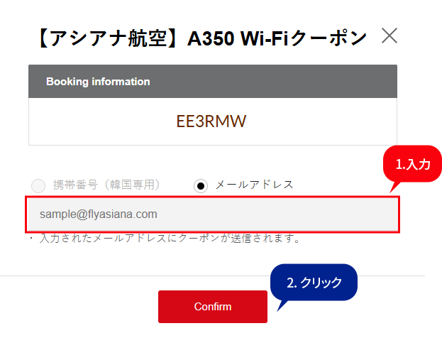 ⇒3万ウォン相当の機内Wi-Fiクーポンが送信されます。