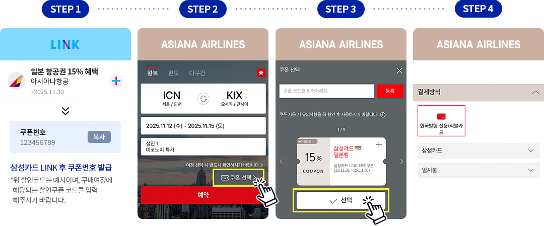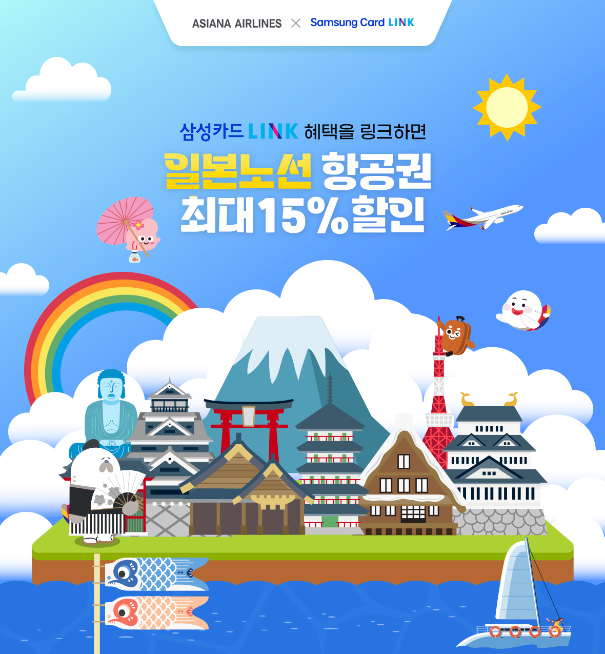 삼성카드 LINK 혜택을 링크하면 일본노선 항공권 최대 15% 할인│아시아나항공